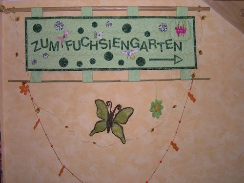 Die Zeiten, wo der Garten uns nicht so sehr in Anspruch nimmt, nutzt Erika für Handarbeiten.